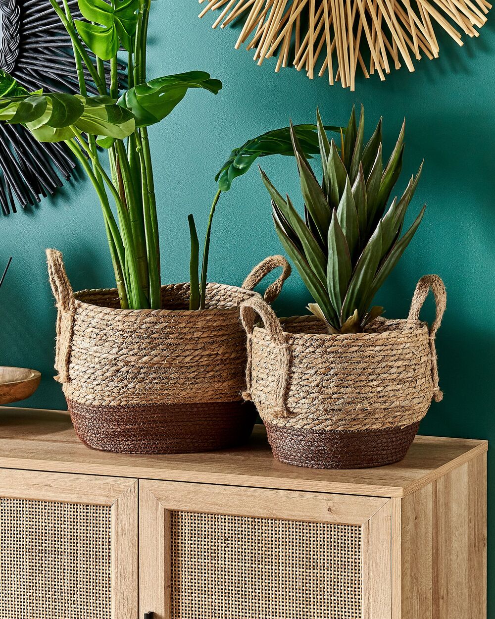 Set Of 2 Seagrass Plant Pot Baskets Natural Paladju Beliani Co Uk